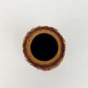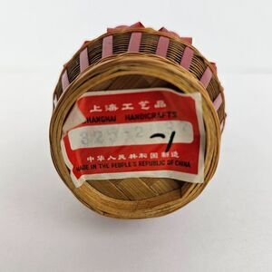 Shanghai Handicrafts Miniature Vase Woven Wicker Rattan Bamboo Basket Vtg Label