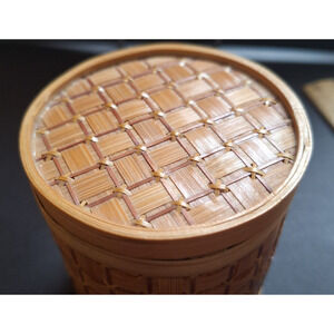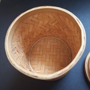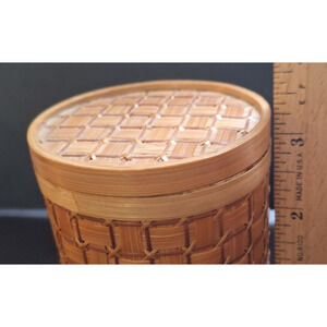 Shanghai Handicrafts Round Bamboo Lidded Basket Jar 3.25" Tall