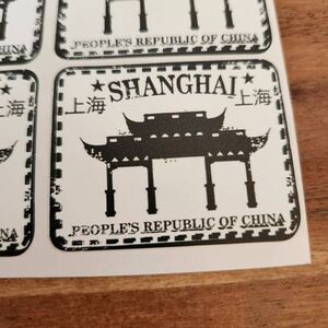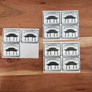 Shanghai Peoples Republic of China 11 small glossy white black stickers