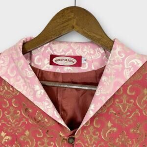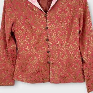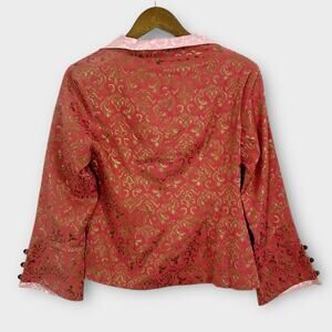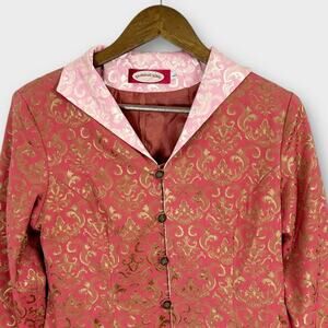 Shanghai Soho Coral and Gold Jacquard Chinese Asian Style Jacket Blazer Large