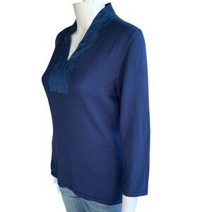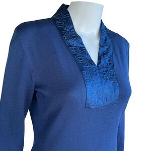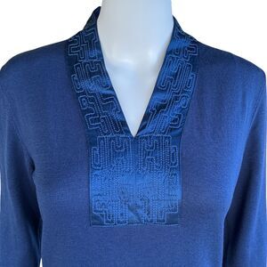 Shanghai Tang Womens Top Size Medium Navy Blue Embroidered Mulberry Silk Cotton $325