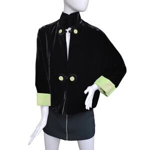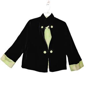 Shanghai Xu Haori Jacket Size Small Black Velvet With Green Lining 2 Buttons