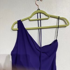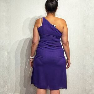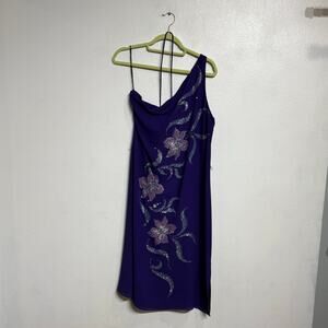 Shangri La Purple Embroidered One Shoulder Vintage Midi Dress Sz M