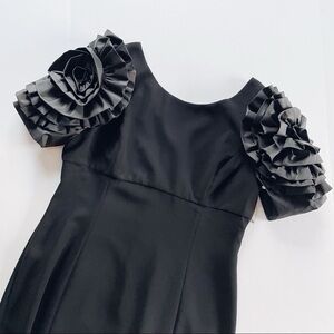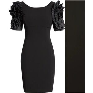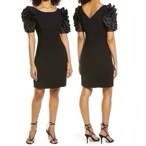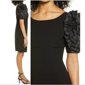 Shani Dramatic Rosette Sleeve Crepe Sheath Cocktail Dress Black