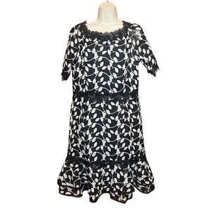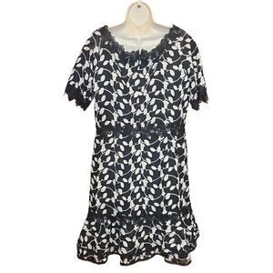 Shani Short-Sleeve Embroidered Lace Dress in Black & White NWT Size 12