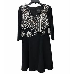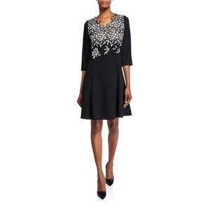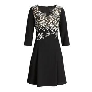 Fit & Flare Black White Shani crepe 3/4 sleeve dress embroidered bodice 4