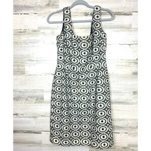 Elegant and timeless, this Shani women’s size 6 dress features a beautiful black and white embroidered design in a flattering A-line silhouette. The sleeveless cut and midi length create a sophisticated look perfect for special occasions, parties, or daytime events. Crafted with attention to detail, it blends classic style with subtle boho charm.