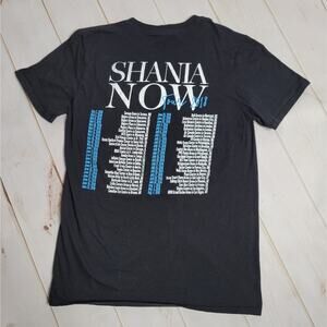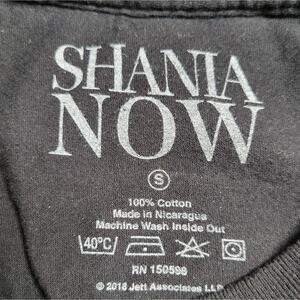 Shania Twain Now Album 2018 Tour T-Shirt, size Small black short sleeve crewneck Shania Twain Now tour 2018 city and dates on the back 100% cotton Measures: (taken flat, double where necessary) pit to pit - 16.5" length - 24.5" in good pre-owned condition