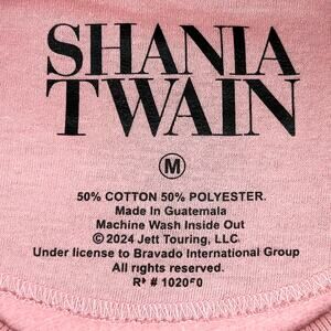 Size Medium Shania Twain Sweatshirt. Soft pink fabric with blue graphics on the front. Longer length than regular sweatshirts. Great condition!