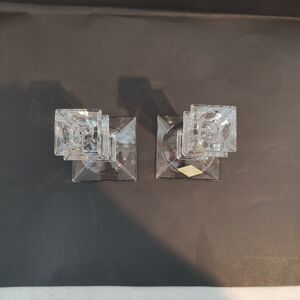 Shannon 24% Lead Crystal Candlestick Holders Square Pedestal Set of 2 Pair