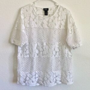 Shannon Ford Lace Embroidered Multi Textured Short Sleeve Top 2X