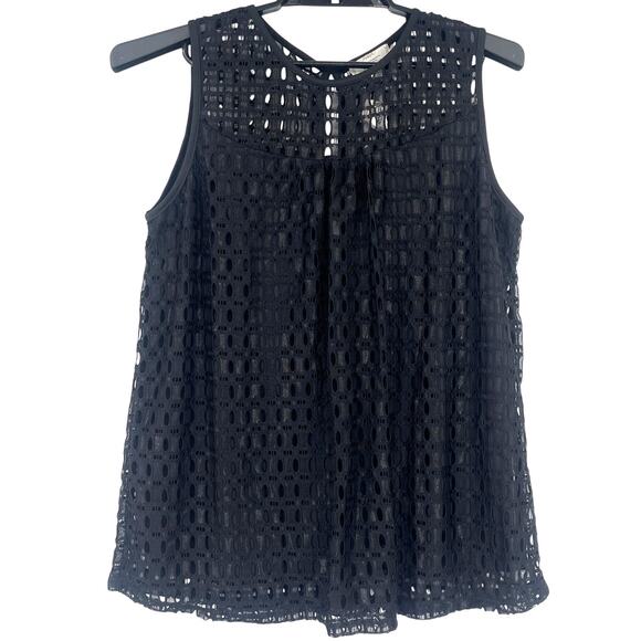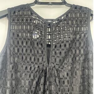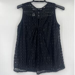Shannon Ford NY Black Crochet Lace Sleeveless Tank Top Blouse Lined Boho Goth Witchy