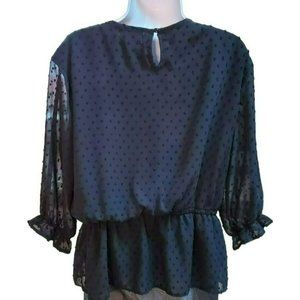 Shannon Ford New York Black Women's Swiss Dot Elastic Waist Three Quarter Sleeve Size Large