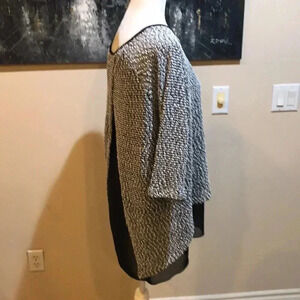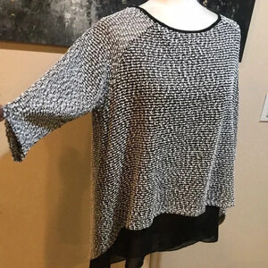 Shannon Ford New York Mixed Fabric Blouse w/3/4 Sleeves & Chiffon Underneath-L