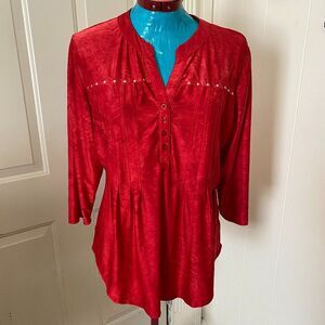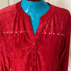 Shannon Ford New York Red Embordered Womens Tunic Top Size L