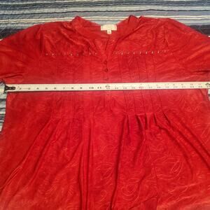 Shannon Ford New York Size 2X Popover Red Textured Top Holiday Office 3/4 Sleeve