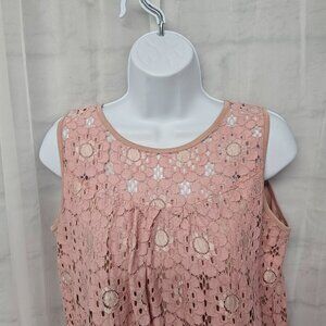 Shannon Ford Pink Floral Lace Tank Coquette Boho Retro M