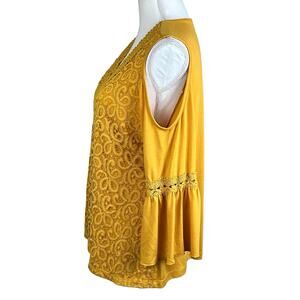 Shannon Ford Top Women XL Mustard Yellow Embroidered Lace Cold Shoulder Blouse