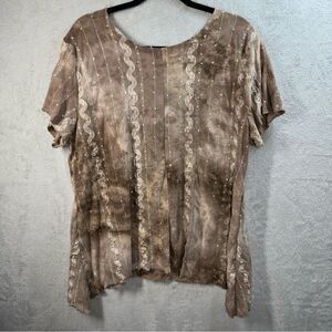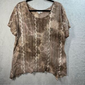 Shannon Ford New York Womans Stretch Blouse Top Shirt Brown Sequin Accent XLP