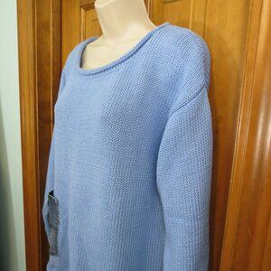 Shannon Passero Blue Marion Pullover Sweater 100% Cotton Denim Pocket Large