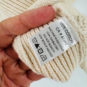 Shannon Passero Cream Knit Sweater L Denim Heart Elbow Patches Oversized Tunic