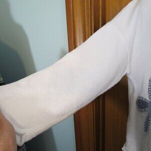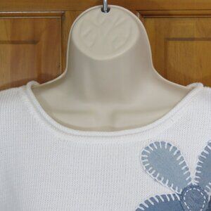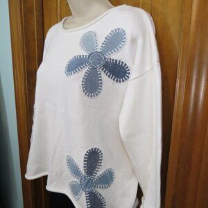 Shannon Passero White & Blue Denim Pullover Sweater 100% Cotton Flowers Medium
