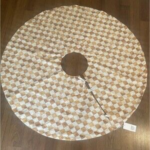 Shannon Retseck Studio Checkered French Linen Holiday Christmas Tree Skirt In Mustard/Cream. Fully lined and measures 52 round. Brand new with out tags. Pictures are from an old listing. Ive recently acquired two more of these but they are both new without tags. I also have same print in peach / sienna. If interested in any of those they are listed separately. Comes from a smoke free home. Retail cost $310