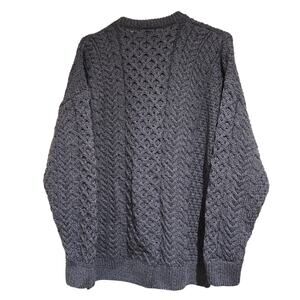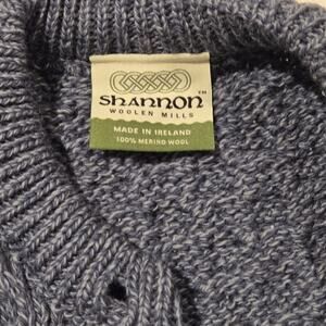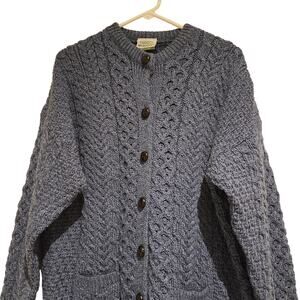 Shannon Woolen Mills Ireland Blue Merino Wool Fisherman Cable Knit Cardigan, XL