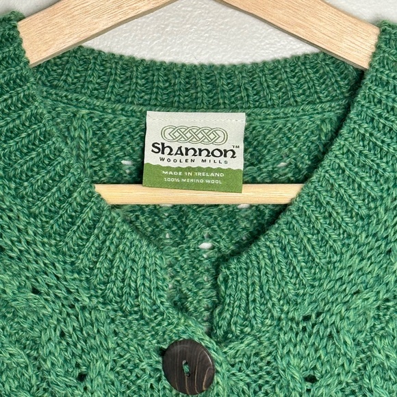 Shannon Woolen Mills Irish 100% Merino Wool Kelly Green Fisherman Cardigan Sz XL