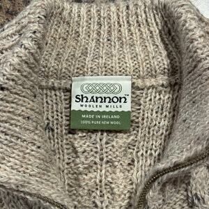 Shannon Woolen Mills Sweater Wool Cable Knit Cottage Grandpa Academia Zip Large