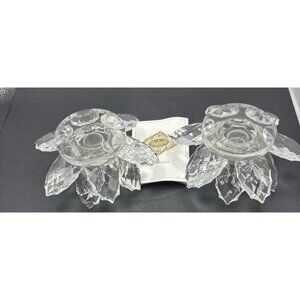Shannon of Ireland Lotus Crystal Candle Holder Vintage Pair Of 3" With Box