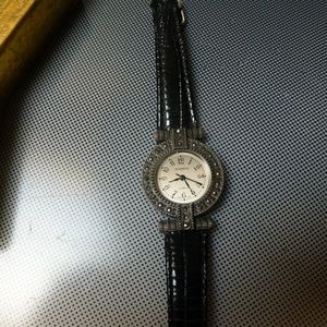 Shannons quartz watch marcasite frame blk band nice everyday watch, like new ,needs new battery