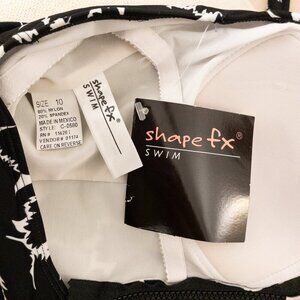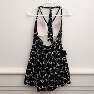 Shape FX Black White Halter Swimsuit Dress with Belt Size 10 Flattering Fit
