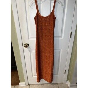 Shape FX Tank Maxi Dress Sz 6 Orange Geometric Embossed Side Slit w Shelf Bra