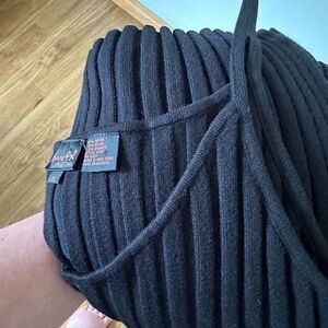 Shape FX Women’s Witchy Goth Black Vertical Ribbed Spaghetti Strap Body Con Maxi