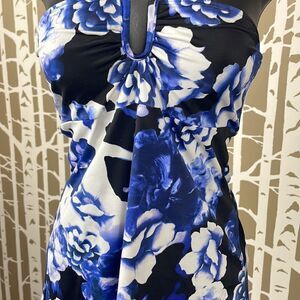 Shape FX Floral Print Swimsuit Dress Halter Neck sz 4