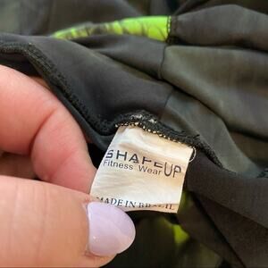 Shape Up Fitness Wear Green Tie Dye Capri Leggings in women's approx size small. The size tag is missing, but they measure like a small, so please check measurements for fit before purchasing. Bright green / neon. Waist measures approx 24 in around when laid flat & unstretched. Rise measures approx 8 in. Inseam measures approx 20.5 in. Leggings are in very good used condition with no flaws or stains and minimal wash wear. Please see all close-up pictures for condition details.
