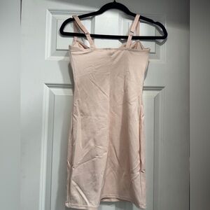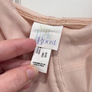 Beige color Shapewear that controls and smooths from the top down. Underwire bra cups for 36D with thin adjustable straps. Two small smudges, as seen in pictures.