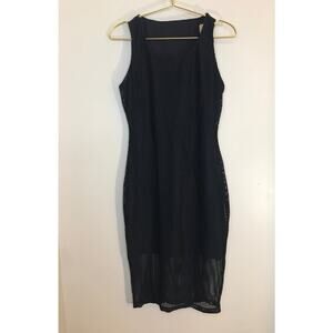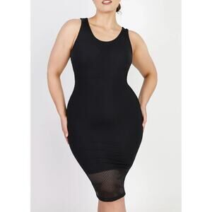 Shapellx Black Mesh Layered Midi Shaper Dress L Bodycon Stretch