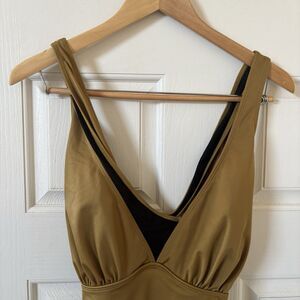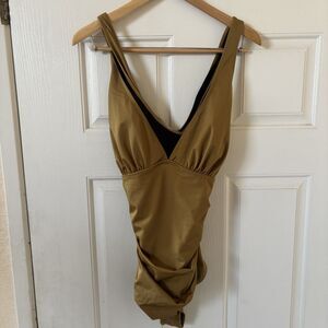Shapellx Smart Sculpt Plunge Cutout XXL Ruched Front Shaping Swimsuit Gold Beach