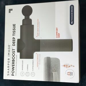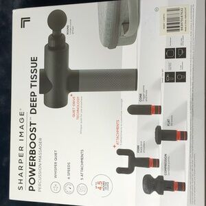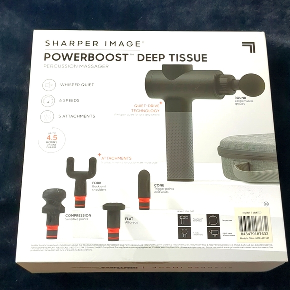 Power booster deep tissue, percussion massager. Has 66 speed mode and 5 attachments: round, fork, compression, flat and cone attachments. This Massager has a Quiet Drive Technology, which makes it whisper quiet where you can use it anywhere. Don't miss out.