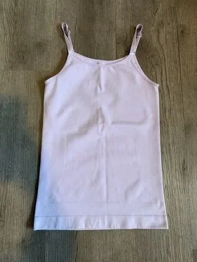 Soft light purple camisole with adjustable straps. Simple, streamlined silhouette. Versatile layering piece. Gentle, pastel color.