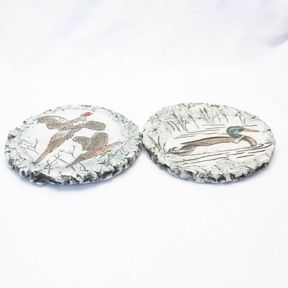 Set of 2 Stan Langtwait Shapes of Clay Volcanic Ash Clay Ceramic Pottery Duck Wall Hanging Plaque Art Mt St Helens 8" Home Decor