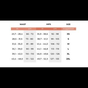 New Shapewear. XS to XXL. Comfortable and clasps at the crotch and underneath the zipper. Great material! Please measure waist before ordering. I can get any size you need