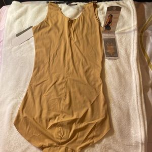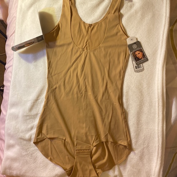 This shapewear tan bodysuit, designed for wear with your own bra, is ideal for smoothing your silhouette under dresses and pants. Its seamless design provides everyday control and is available in multiple sizes. 🩷