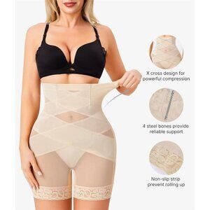 Body shaper tummy control butt lifter:These tummy control shapewear feature a unique double-layer crossover design that ensures maximum comfort while offering moderate compression. The high-waisted design acts as effective womens shapewear tummy control, smoothing away unwanted waist and belly fat, erasing muffin top appearances and sculpting a sleek, snug waistline.