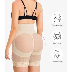 3D butt-lifting and thigh slimmer shapewear:This butt lifting shapewear is engineered with ergonomic round butt circles for a significant lift and to sculpt the ideal C-curve silhouette. This butt lifter panties goes beyond by reaching down to the mid-thighs, compressing and reducing unwanted fat. Plus, the elegant lace trim at the bottom is equipped with a non-slip strip to prevent this butt lifter shorts from rolling up, ensuring a smooth, secure fit throughout the day.