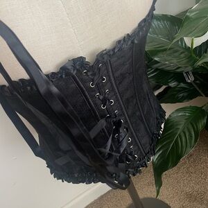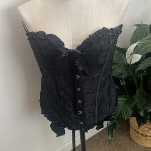 Shapewear woman black Frill Trim Bow Knot Front Lace Up corset Back Lace New without tag size 2XL