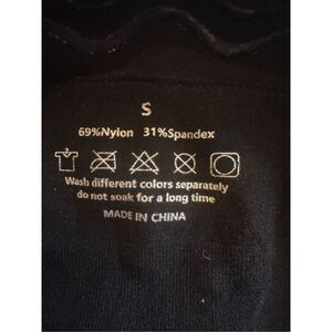 High waist fairly tight compression inside top of waist there is a rubber piping to help hold it in place. Top to hip 11” top to bum seam 17” waist 10” unstretched has bum lifting technology. In very good condition.