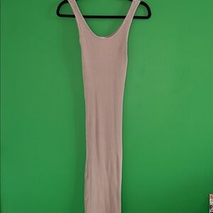 Elegant sleeveless ribbed maxi dress in a neutral tone. Perfect for any occasion.